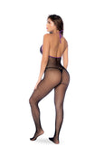 Show off your curves in this stylish fishnet bodystocking with lace cups, contrast trim details, halter neckline and low back.